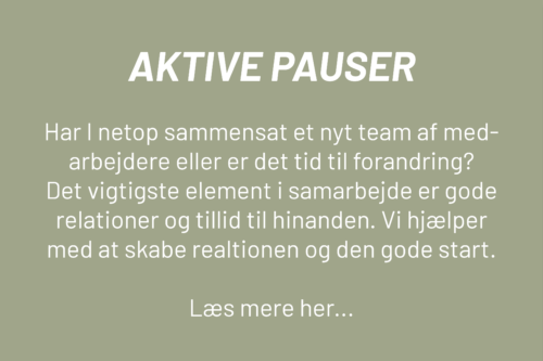 Vi vil gerne hjælpe jer med at finde frem til de aktiviteter og den mødefacilitering som passer til netop jeres gruppe og jeres arrangement. Find inspiration herunder og lad os sammen finde det helt rigtige med udgangspunkt i jer.